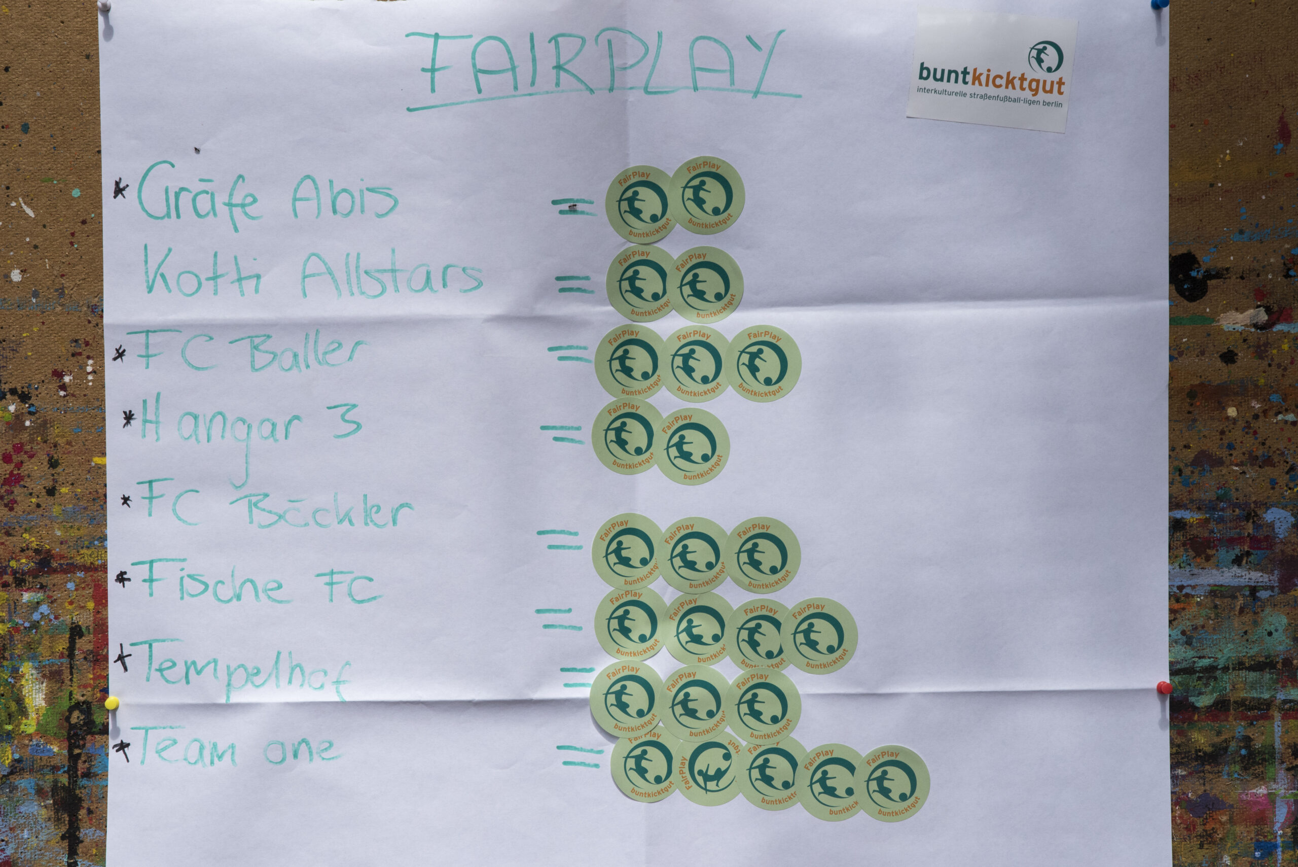 Der Zaun war bunt: Wie immer gab es einige schöne Verzierungen und Banner von Kotti&Co, Kreuzberger Jugendclubs, dem Nachbarschaftshaus Urbanstraße und von Buntkickgut. Bereits aus den letzten Jahren bekannte Gesichter ließen sich bei den Gräfe Abis, den Kotti Allstars und dem FC Böckler entdecken. Diese Teams sind nun schon Serienteilnehmer. Aber es waren auch wieder ganz neue Teams dabei. Zum Beispiel das Team Hangar 3 (vom Tempelhofer Flughafen) oder der Fische FC von einer der Kreuzberger Schulen. Die Spiele waren intensiv und dank der guten Schiedsrichterleistungen von den buntkicktgut referees lief alles fair ab. Den Turniersieg 2025 feiern konnte am Ende der FC Baller. Noch ein par Bilder und ein Statement zum Turnier von Marc von Buntkickgut gibts hier: https://www.instagram.com/p/DQcJq8_jP4p/